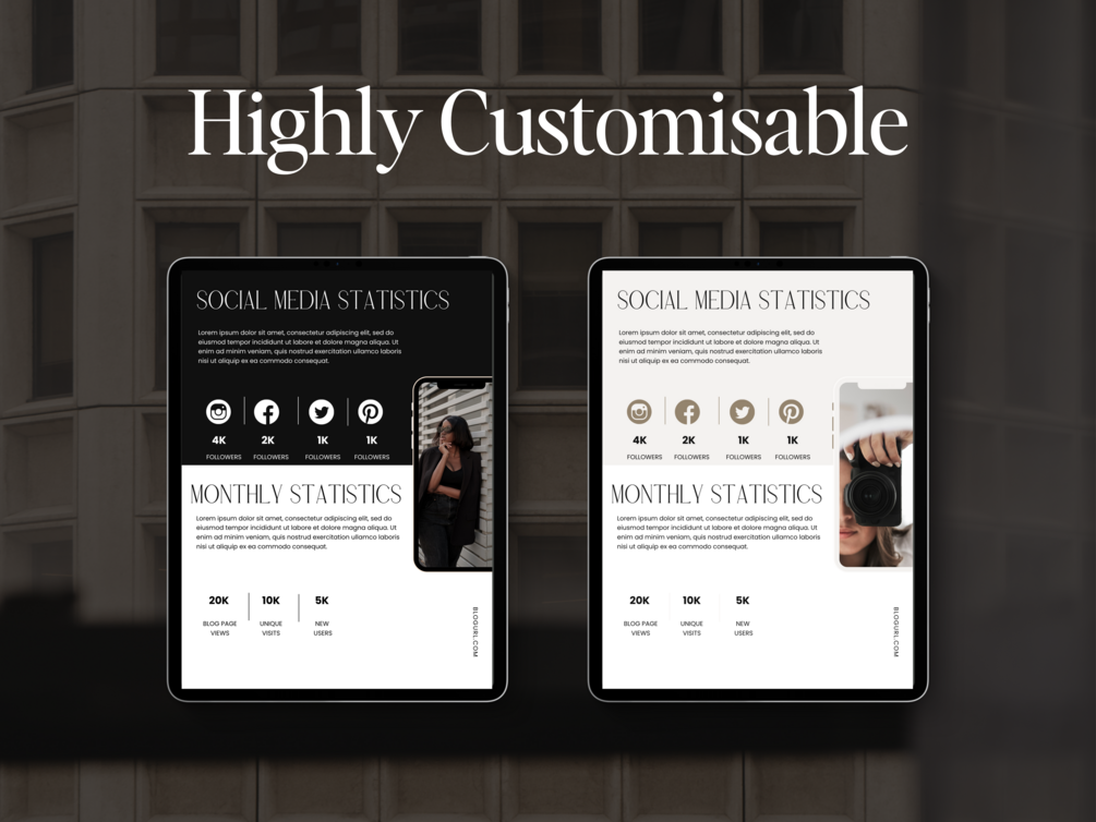 This Media Kit is a 6-page editable design for you to customise to match your branding.