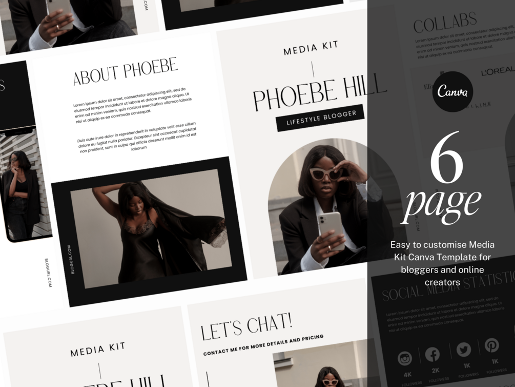 6 Page Customisable Media Kit Canva Template, perfect for bloggers & online creators